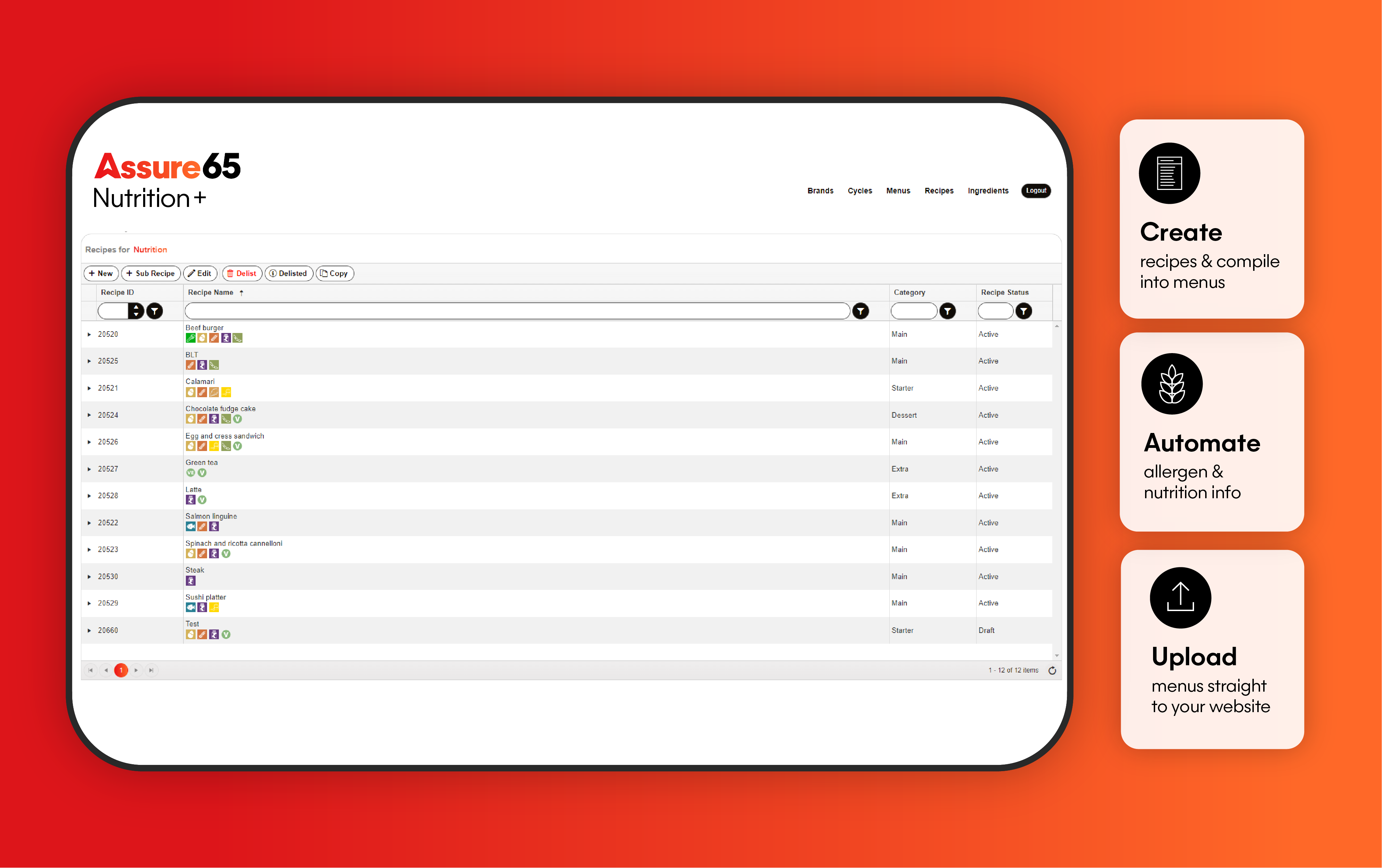 Streamline the management of suppliers, ingredients, menus, dishes and labelling with our end-to-end suite of smart software modules, Assure65.
